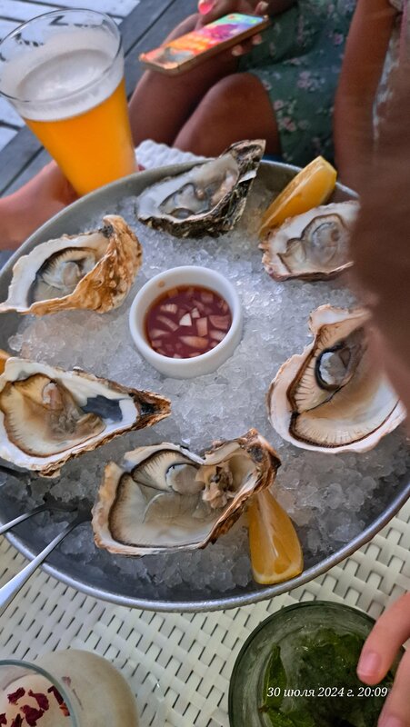 Как я люблю это место. Мидии бомба, устрицы не большие были, 2 порции съела, но мне их хоть выворку дай и мало будет 😁